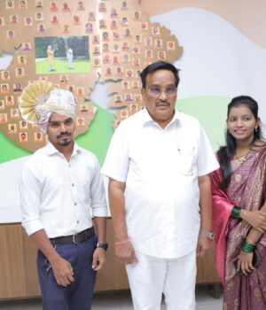 નાયક મરાઠા સમાજ સેવા સંઘના ૨૬માં સમૂહલગ્નમાં લગ્નગ્રંથિથી જોડાયેલ વર-વધૂઓ સાથે ગતરોજ સાંસદ સીઆર પાટીલ જોડે શુભેચ્છા મુલાકાત