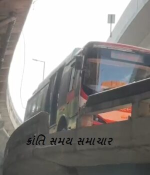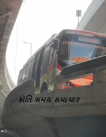 સુરતના સહારા દરવાજા નજીક રિંગરોડ પરના ફ્લાય ઓવર બ્રિજ પર BRTS બસ અકસ્માતનો ભોગ બની છે. બસ જ્યારે બ્રિજ પરથી નીચે ઉતરી રહી હતી, ત્યારે ડ્રાઈવરે કોઈ કારણોસર કાબૂ ગુમાવતા બસ બ્રિજની રેલિંગ સાથે ધડાકાભેર અથડાઈ હતી. આ અથડામણ એટલી જોરદાર હતી કે રેલિંગનો કેટલોક ભાગ તૂટી પડ્યો હતો. બસ રેલિંગ તોડીને બ્રિજ નીચે ખાબકતા ખાબકતા માંડ માંડ બચી હતી, જેના કારણે એક મોટી જાનહાનિ ટળી ગઈ હતી.